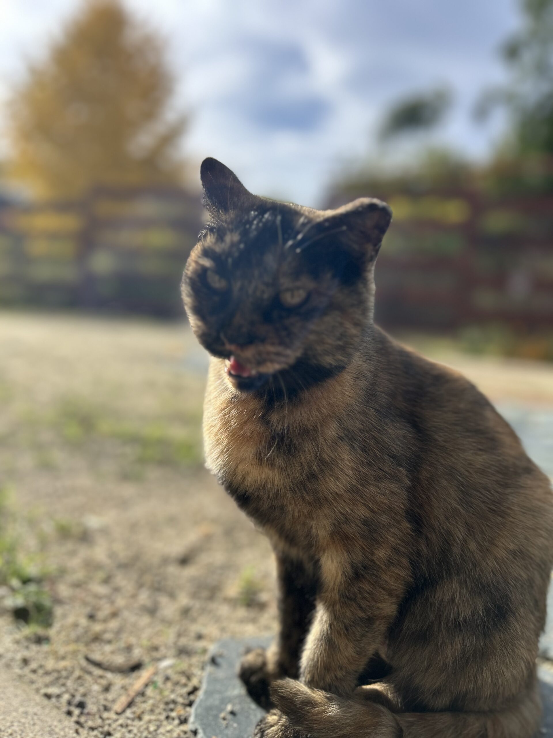 五年前ほど前から弊社にたびたび遊びに来ていたサビ猫ちゃんが先日より子猫を2匹連れて現れるようになりました